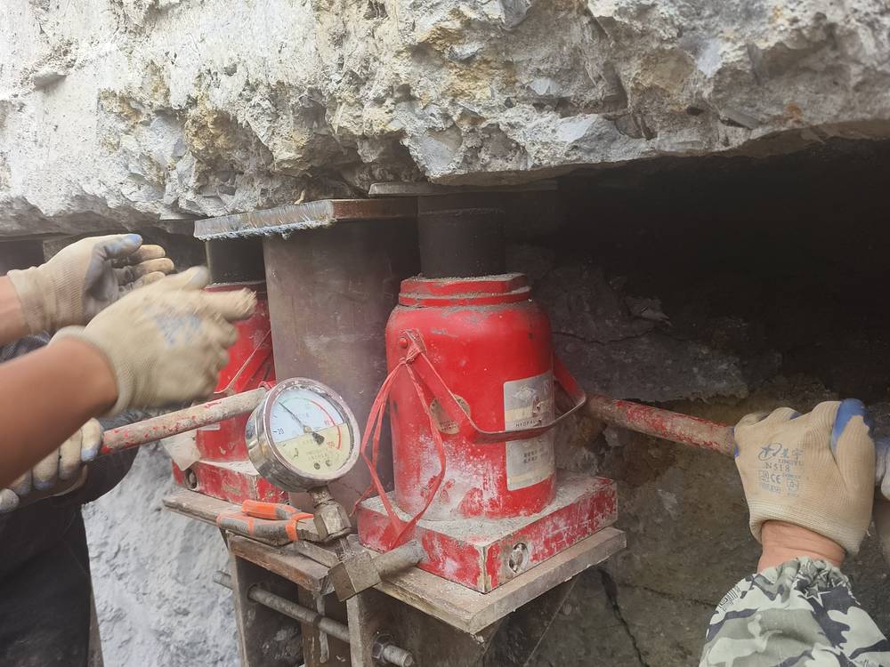 壓樁完成后,以靜壓樁為支點(diǎn),利用千斤頂進(jìn)行頂升施工,糾正建筑物傾斜。