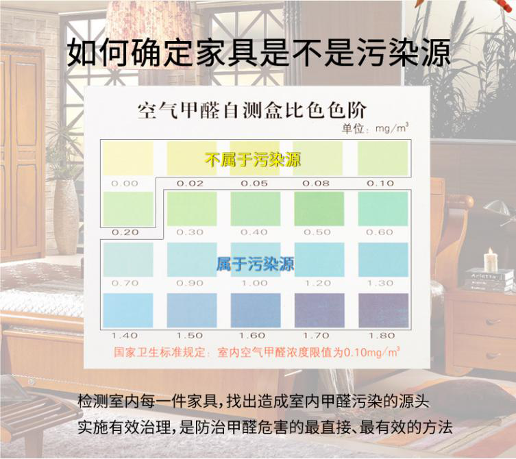 第一步:檢測家里所有家具內的甲醛濃度,找出釋放甲醛的元兇,即甲醛釋放源。